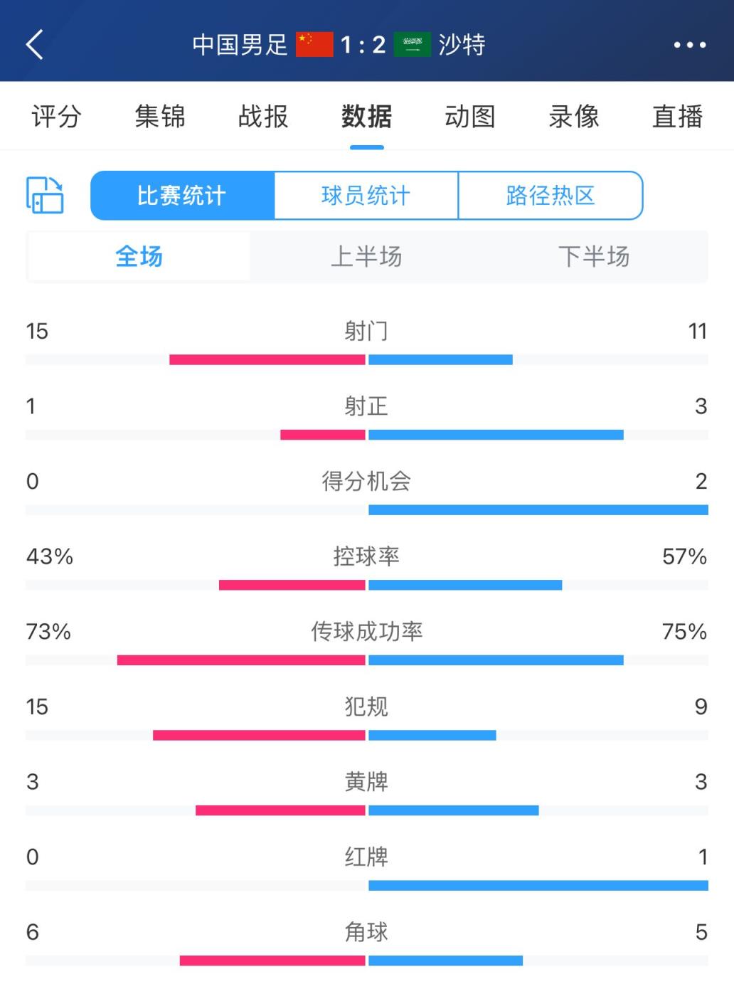国足2场被射28脚12次射正丢9球