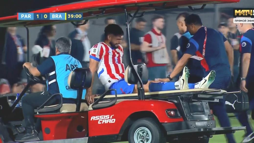 • 与恩德里克争顶受伤,巴拉圭后卫阿德雷德被医疗车运送下场
