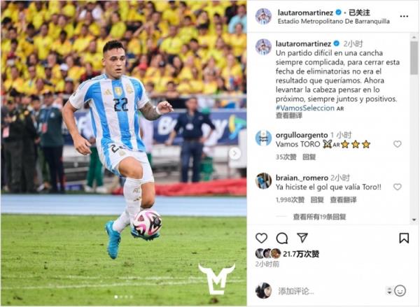 • 劳塔罗:本不想以失利结束这轮世预赛,现在要考虑下一步